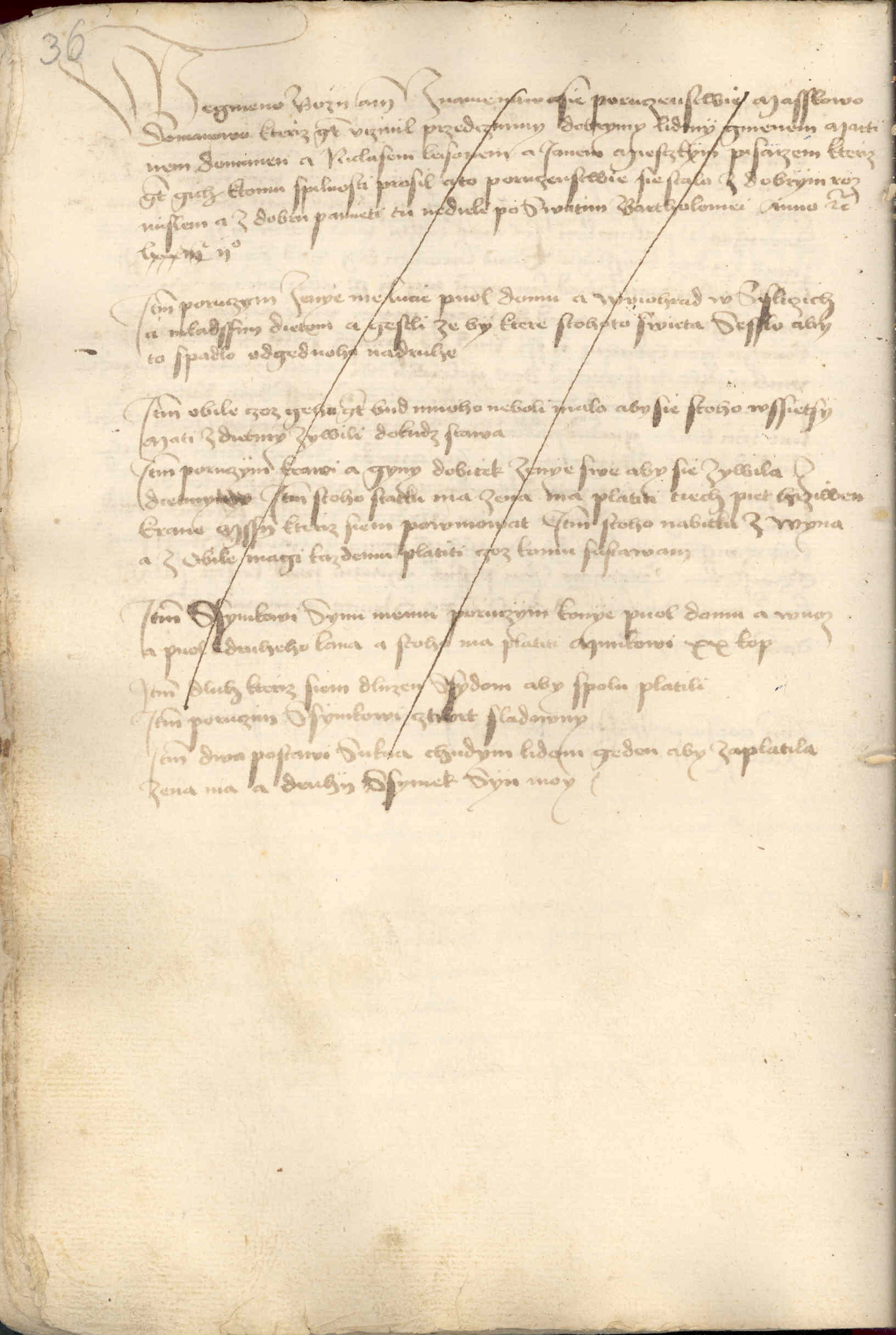 We gmeno bozii amen.1) Znamenawa sie poruczenstwie Masskowo Domanowo, kteriz gest uczinil przed cztnimy dobrymy lidmij gmenem Martinem Domanem a Niclasem Leisonem a Ianem, miesczkym pisarzem, kteriz gest gich k tomu s pilnosti prosil. A to poruczenstwie sie stalo z dobrym rozmislem a z dobru pamieti tu nedieli po swatim Bartholomei anno etc. lxxxijo. Item poruczym zenye me Lucie puol domu a winohrad w Sisliczich a mladssim dietom. A gestli ze by ktere stohoto swieta sesslo, aby to spadlo od gednoho na druhe. Item obile czoz geho gest, bud mnoho neboli malo, aby sie s toho wssietsy mati z dietmy zywili, dokudz stawa. Item poruczym krawi a gyny dobitek zenye swe, aby sie zywila z dietmy.