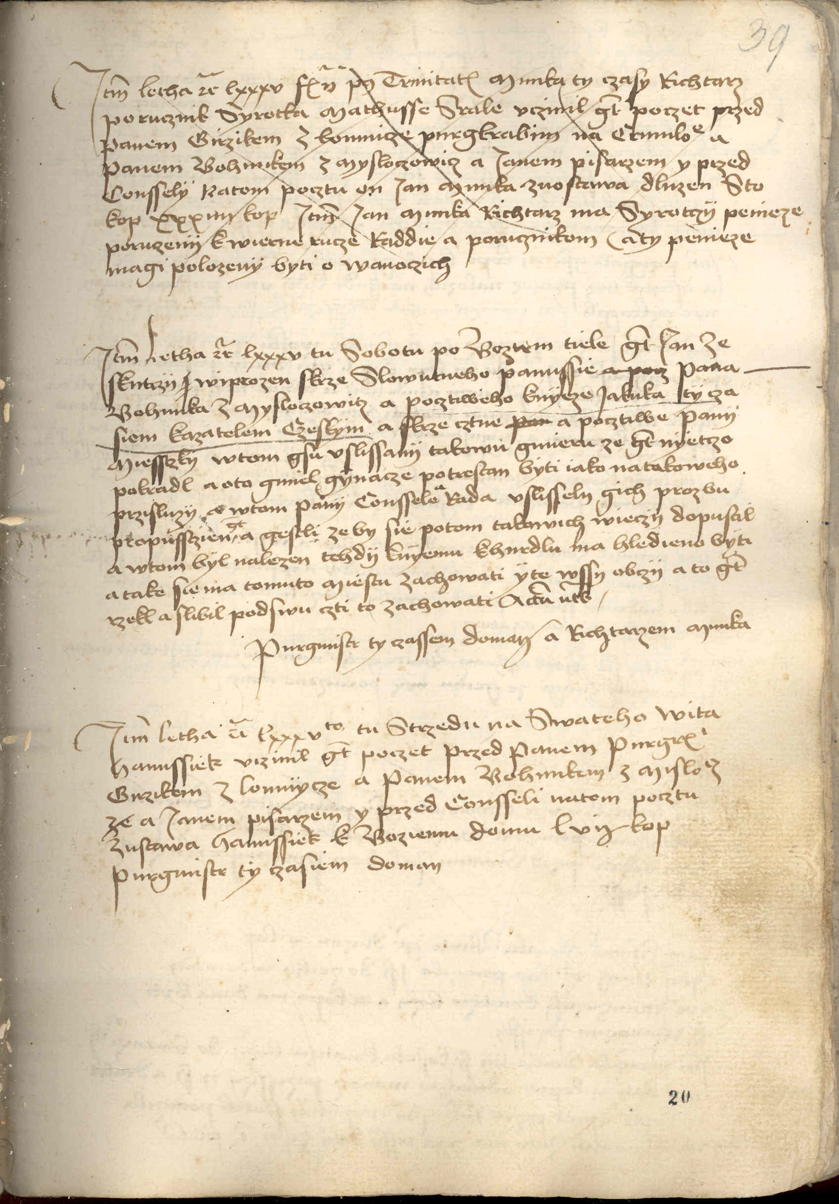 Item letha etc. lxxxvto tu strzedu na swateho Wita Hanussiek vczinil gest poczet przed panem purgkrabim Girzikem z Lomnycze a panem Bohunkem z Misloczowicz ze6) a Ianem pisarzem, y przed consseli. Na tem pocztu zustawa Hanussiek k boziemu domu LVI ½ kop, purgmistr ty czasiem Doman.