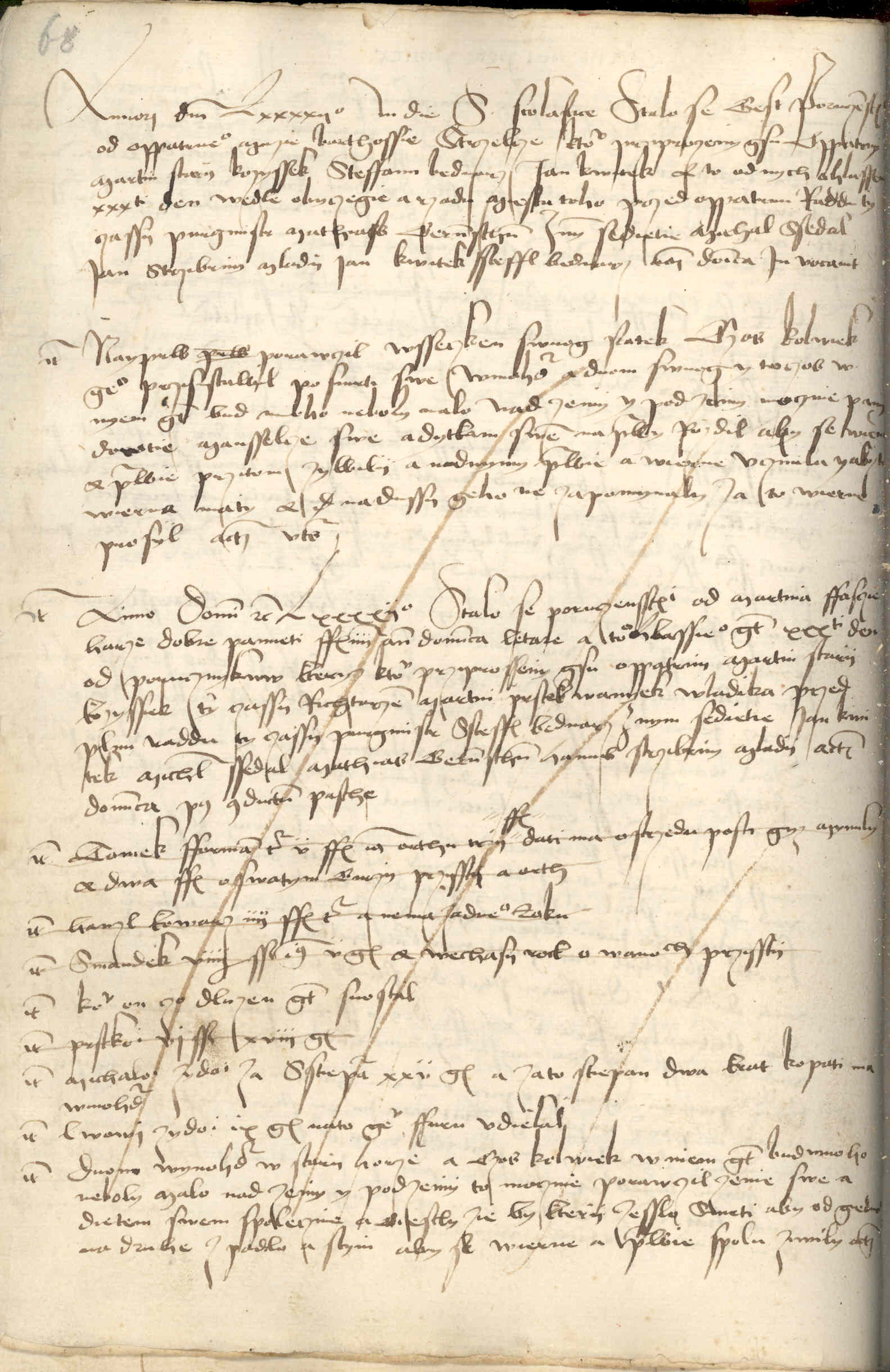 Anno Domini etc. Lxxxxijo stalo se poruczensstwi od Martina ffasczieharze, dobre pamieti, feria iiiia ante dominica Letare, a to ohlassieno gest xxxti den od poruczenykuw, kteryz k tomv prziprosseny gsu, oppatrnij Martin starij Kozyssek, ty czassij richtarzem Martin Prstek, Wanyek Wladika, przed plnu raddu, ty czassij purgmistr Steffl bednarz, z nym sedietie Ian Kwitek, Michel Ssedal, Mathias Gerenschen, Hanns Strzibrny mladij, actum dominica post conductum Pasche.