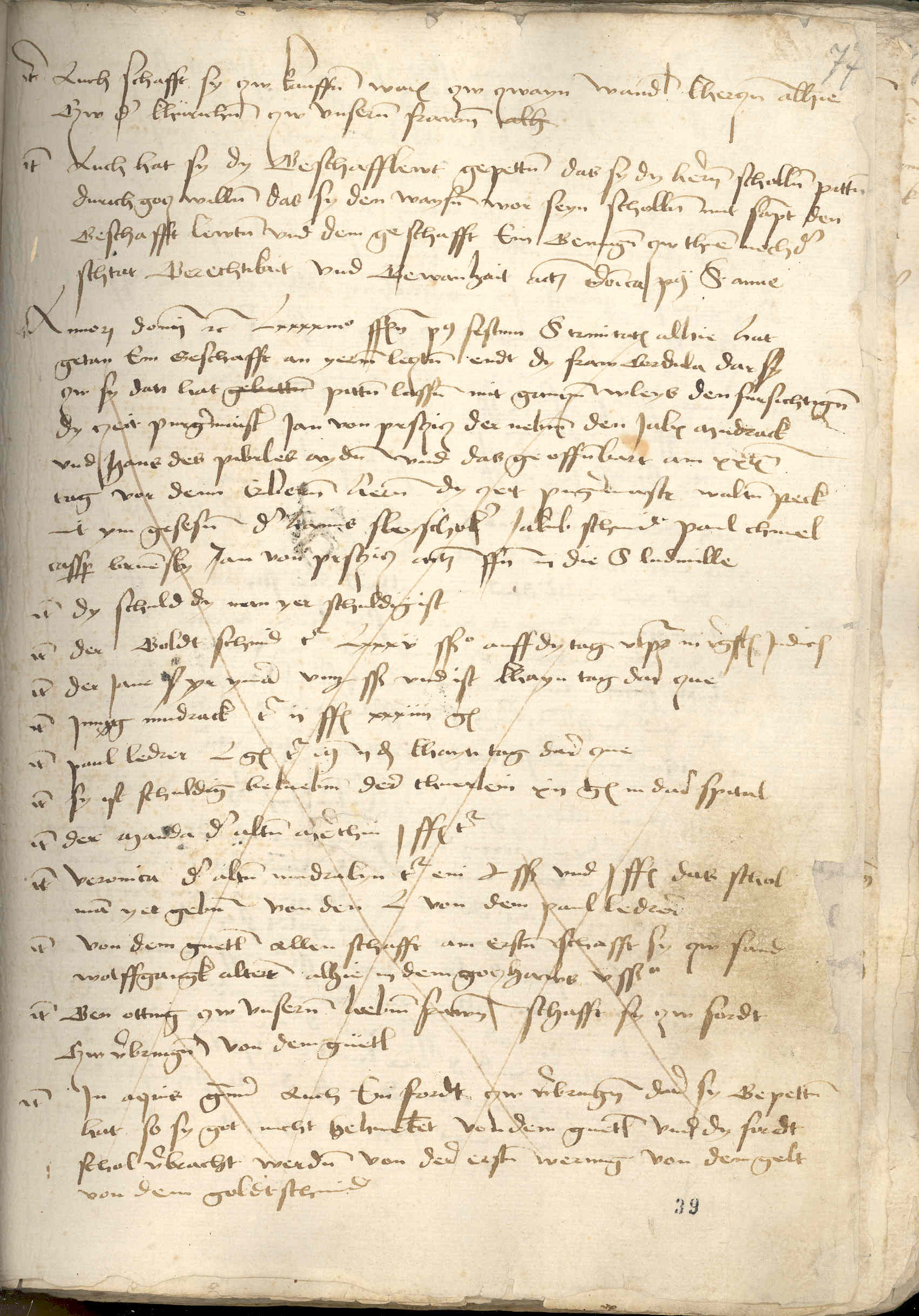 Item dy schuld, dy man yer schuldig ist. Item der Goldtschmid tenetur LXXXV s. auff dy tag, ut patet in registris iudicis. Item der Iane yr yman VIII ½ s., vnd ist khayn tag darczue. Item iung Mudrack tenetur II fl. XXXIIII gr. Item Paul ledrer L gr. tenetur, minus II d., kheyn tag darczue. Item sy ist schuldig belueben der Thuerlein XII gr. in das spital. Item der Manda, der alten Merthin, I fl. tenetur. Item Veronica, der alten Mudrakyn, tenetur ein ½ s. vnd I fl., das schol man yer geben von den L von dem Paul ledrer. Item von dem guetl allen schafft, am ersten schafft sy czw sand Wolffgangk alter alhie in dem goczhaws V s. Item gen Otting czw unseren lieben Frawen schafft sy czw fordt czw verbringen von dem güetl. Item in Aquisgranum auch ein fordt czw verbringen, darum sy gepetten hat, so sy got nicht behuetet, von dem guetel, vnd dy fordt schol verbracht werden von der ersten werung von dem gelt von dem Goldt schmidt.