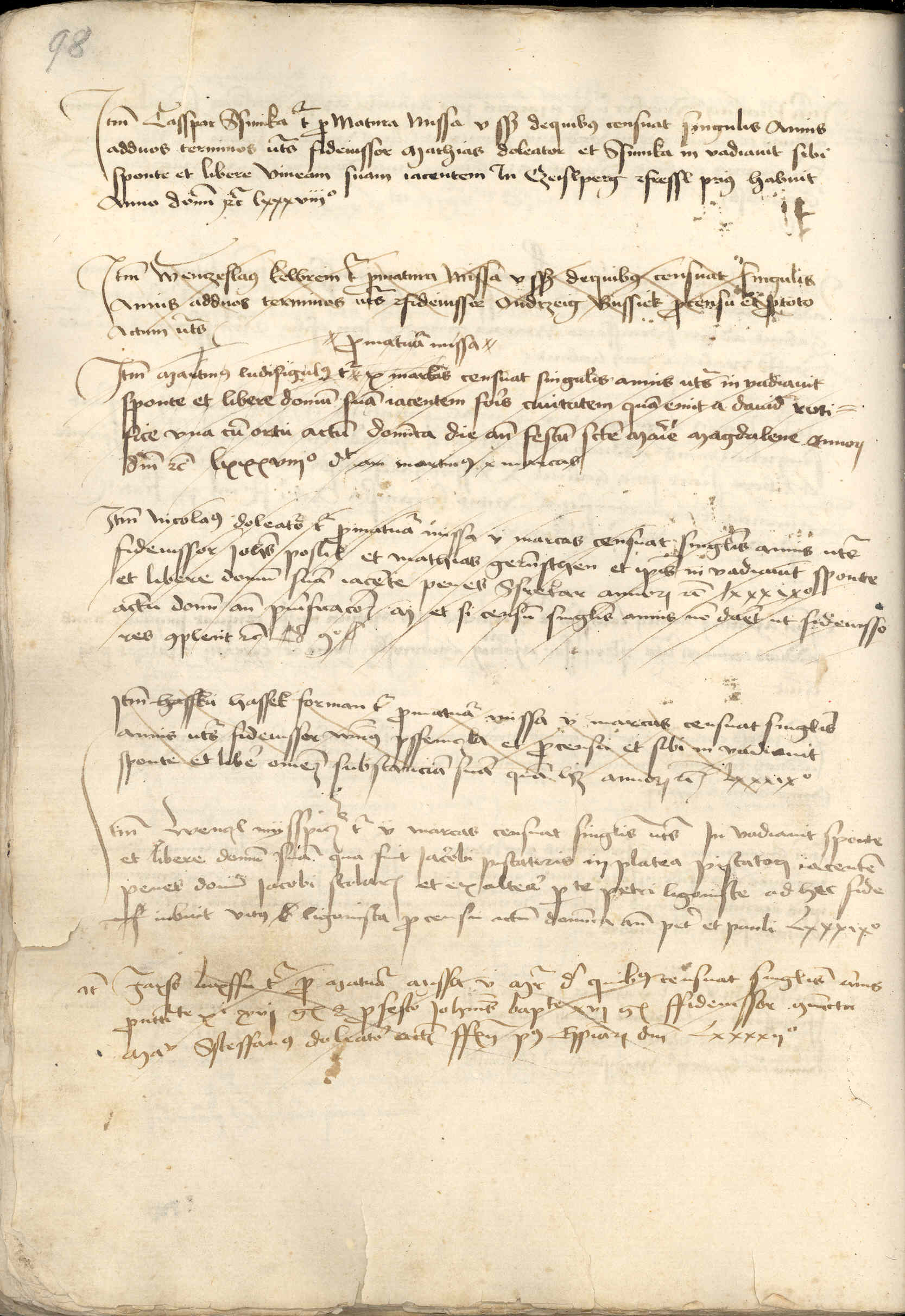 Item Iaxss Luxssu tenetur pro matura missa V marcas, de quibus censuat singulis annis pro Nativitate Cristi XVI gr. et pro festo Iohannis Baptiste XVI gr., fideiussor coniuncta manu Steffanus doleator. Actum feria iia post Eppiphaniam Domini Lxxxxijo.14)