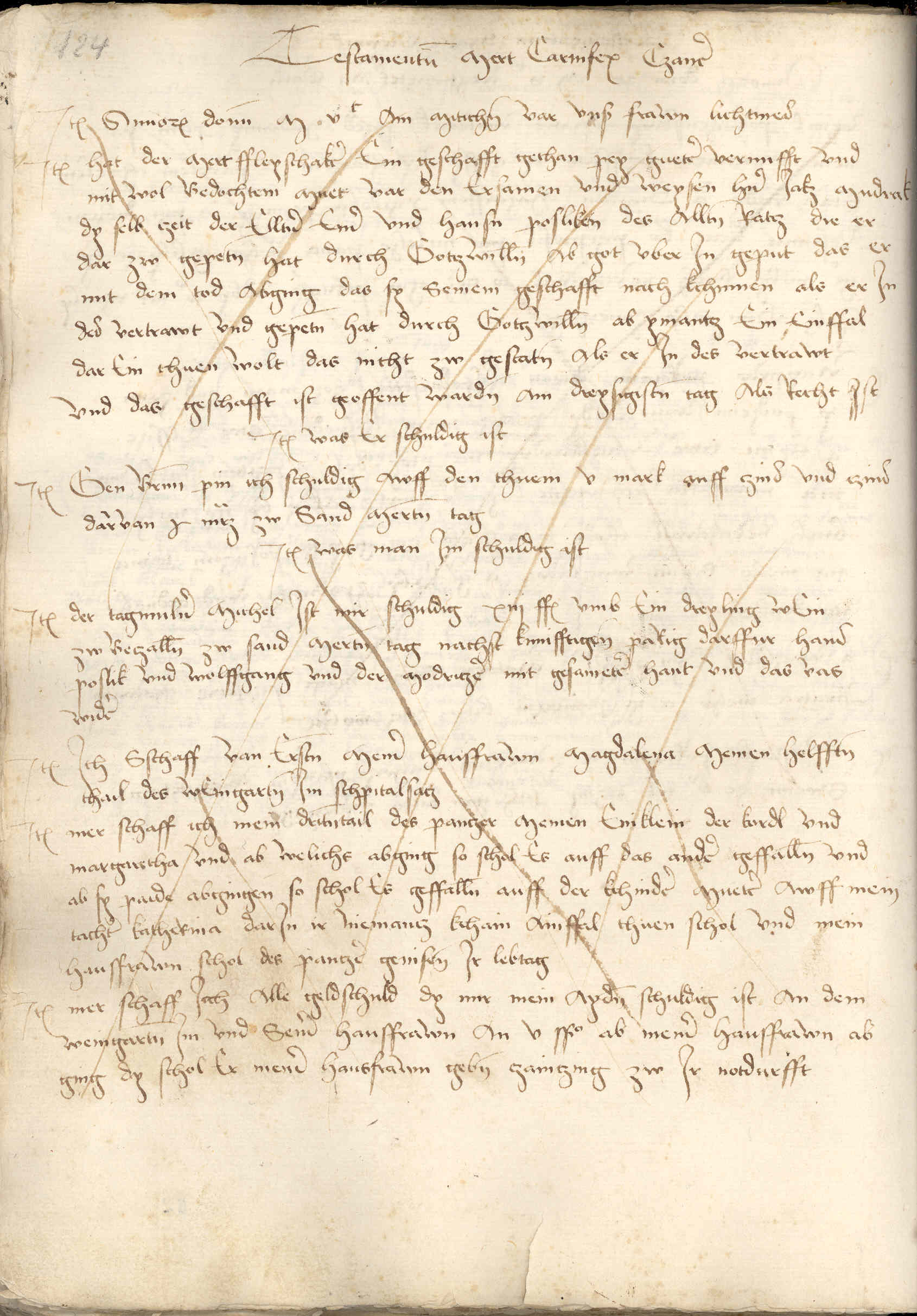 Item ich sschaff van ersten meiner hausfrawn Magdalena meinen helfften thail des weingarten im Schpitalsacz. Item mer schaff ich mein dritentail des Panczer meinen eniklein, der Kordl vnd Margaretha. Vnd ab welichs abging, so schol es auff das andere geffallen. Vnd ab sy paide abgingen, so schol es geffallen auff der kchinder mueter awff mein tachter Katherina, darin ir niemancz kchain ainffal thuen schol. Vnd mein hausfrawn schol des Panczer genisen ir lebtag. Item mer schaff ich alle geldschuld, dy mir mein ayden schuldig ist an dem weingarten, im vnd seiner hausfrawn an V s. Ab meiner hausfrawn abging, dy schol er meiner hausfrawn geben czainczung [haiczung] zw ir notdurfft. Item mer schaff ich all mein guett wirtschafft, wein vnd was ich hab, varvnd vnd vnfarvnd, als meiner hausfraw Magdalena. Vnd pit dy erberen abgeschtimmten herren in das mein geschafft bevolhen lassen sein vnd meiner hausfrawn vargeer zw sein, als ich in des vertraw.1)