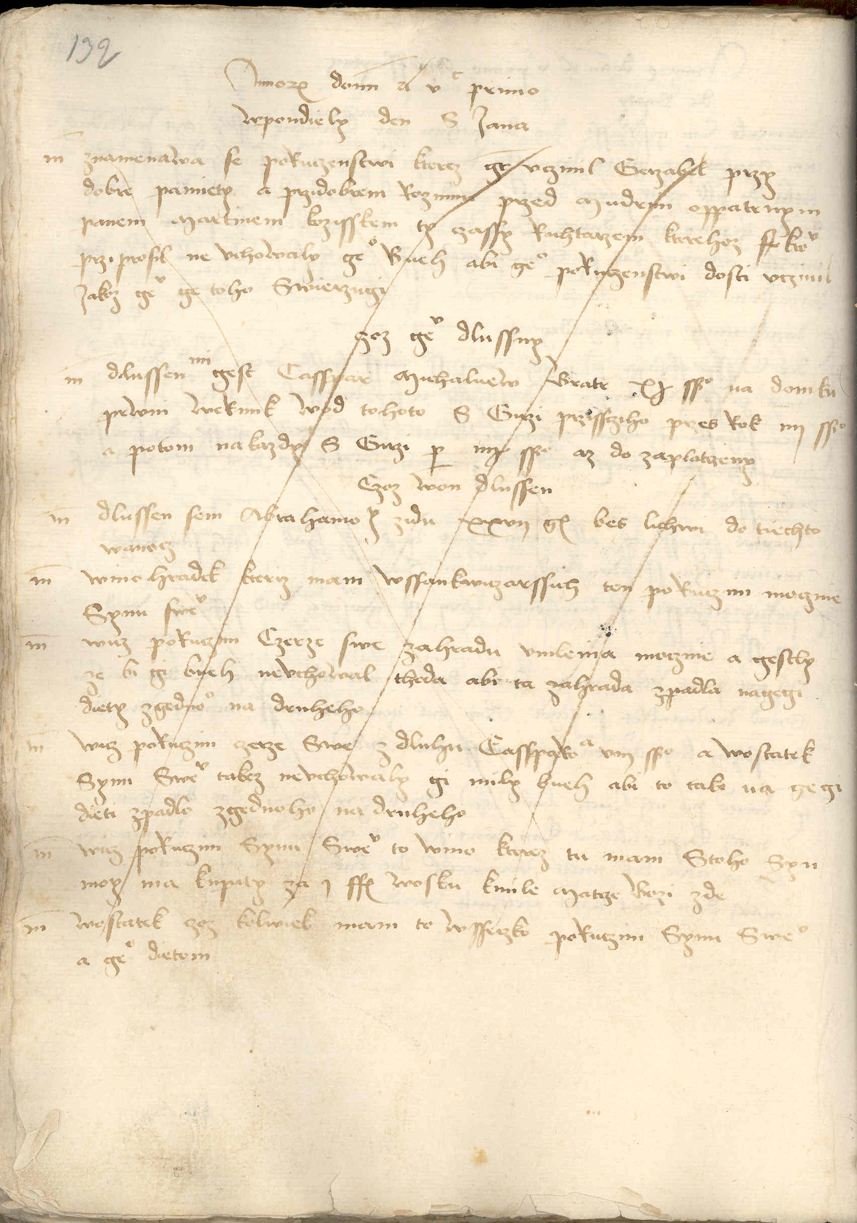 Annorum Domini etc. vc primo w pondiely den s. Jana Item znamenawa se poruczenstwi, kterez gest vczinil Gerzabek przy dobre pamiety a przi dobrem rozumu przed mudrim oppatrnym panem Martinem Kozisskem, ty czassy richtarzem, kterehoz k tomv prziprosil. Nevchowaly geho Bueh, abi geho pruczenstwi dosti vczinil, iakoz gemv ge toho swierzugi.