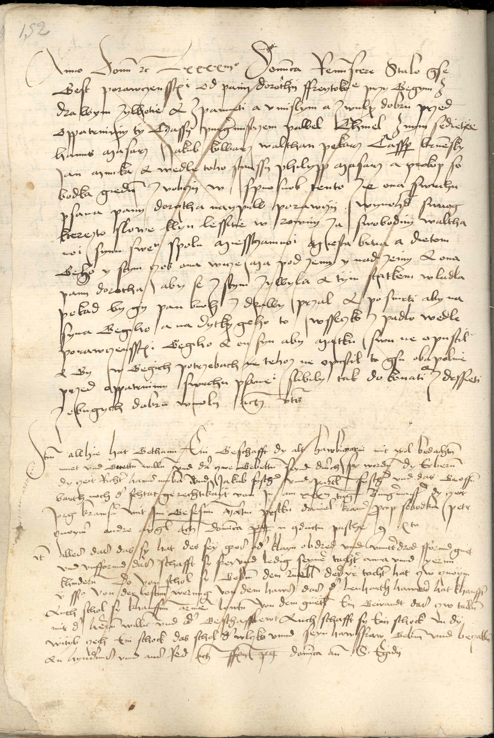 Zde byla zaznamenána závěť, kterou učinila stará Haubicarová s dobrým rozmyslem a vůlí. A k tomu byli připrošeni jako poručníci závěti počestní páni Hanuš Munka, toho času rychtář, Jakub rybář a Bartoloměj rybář. A ta závěť byla otevřena podle městského práva na třicátý den, purkmistrem ty časy Jiří Kramsar, s ním sedící radní Martin Prstků, Daniel Kramsar, Prokop Sobotka, Petr Znojemský a Ondřej Aigl.