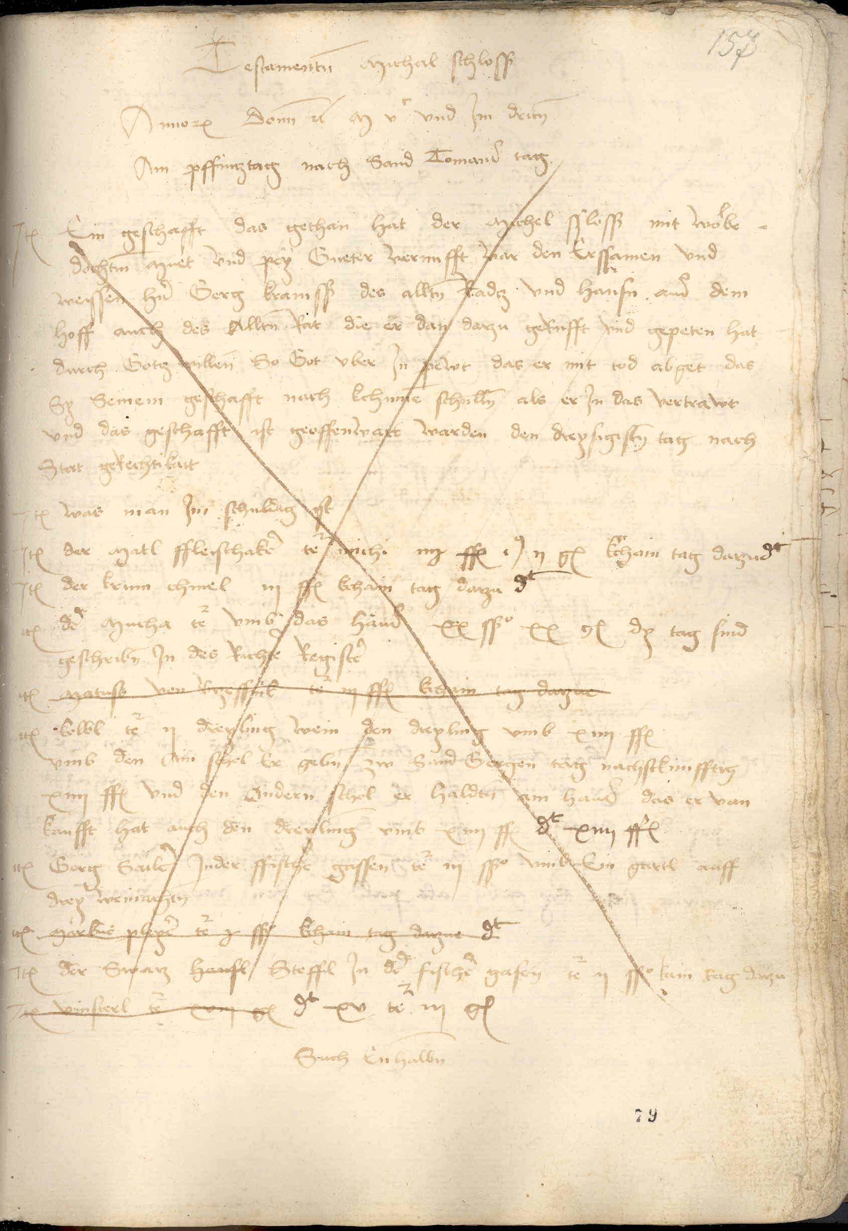Annorum Domini etc. Mvc vnd im dritten, am pffincztag nach sand Tomans tag. Item ein geschafft das gethan hat der Michel sslosser mit wolbedochtem muet vnd pey gueter vernufft var den erssamen vnd weissen herren Gerg Kramsser, des allten radcz, vnd Hansn aus dem hoff, auch des allten rat, die er dan darzu gerufft vnd gepeten hat durch gotcz willenn. So got vber in pewt, das er mit tod abget, das sy seinem geschafft nach kchumen schullen, als er in das vertrawt. Vnd das geschafft ist geoffenwart warden den dreysigisten tag nach stat gerechtikait.