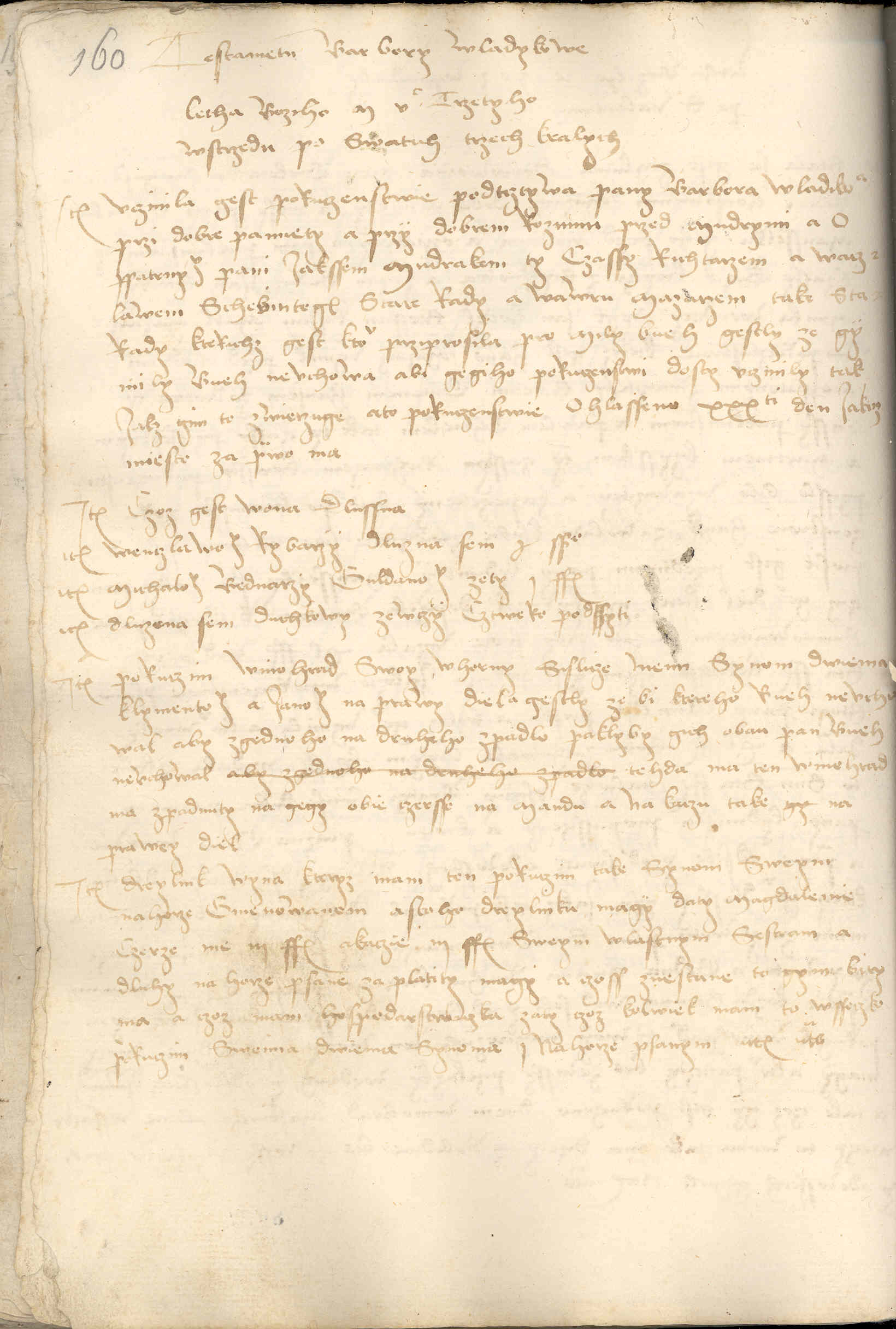 Letha boziho MVc trzetyho w strzedu po swatich Trzech kralych Item vczinila gest poruczenstwie podtcztywa pany Barbora Wladikowa przi dobre pamiety a przy dobrem rozumu przed mudrymi a oppatrnymy pani Iakssem Mudrakem, ty czassy richtarzem, a Waczlawem [Schebintegl?], stare rady, a Wawru mazarzem, take stare rady, kterichz gest k tomv prziprosila pro mily Bueh. Gestly ze gy mily Bueh nevchowa, abi gegiho poruczenstwi dosty vczinily, tak iakz gim to zwierzuge, a to poruczenstwie ohlasseno xxxti den, iakoz miesto za prawo ma.