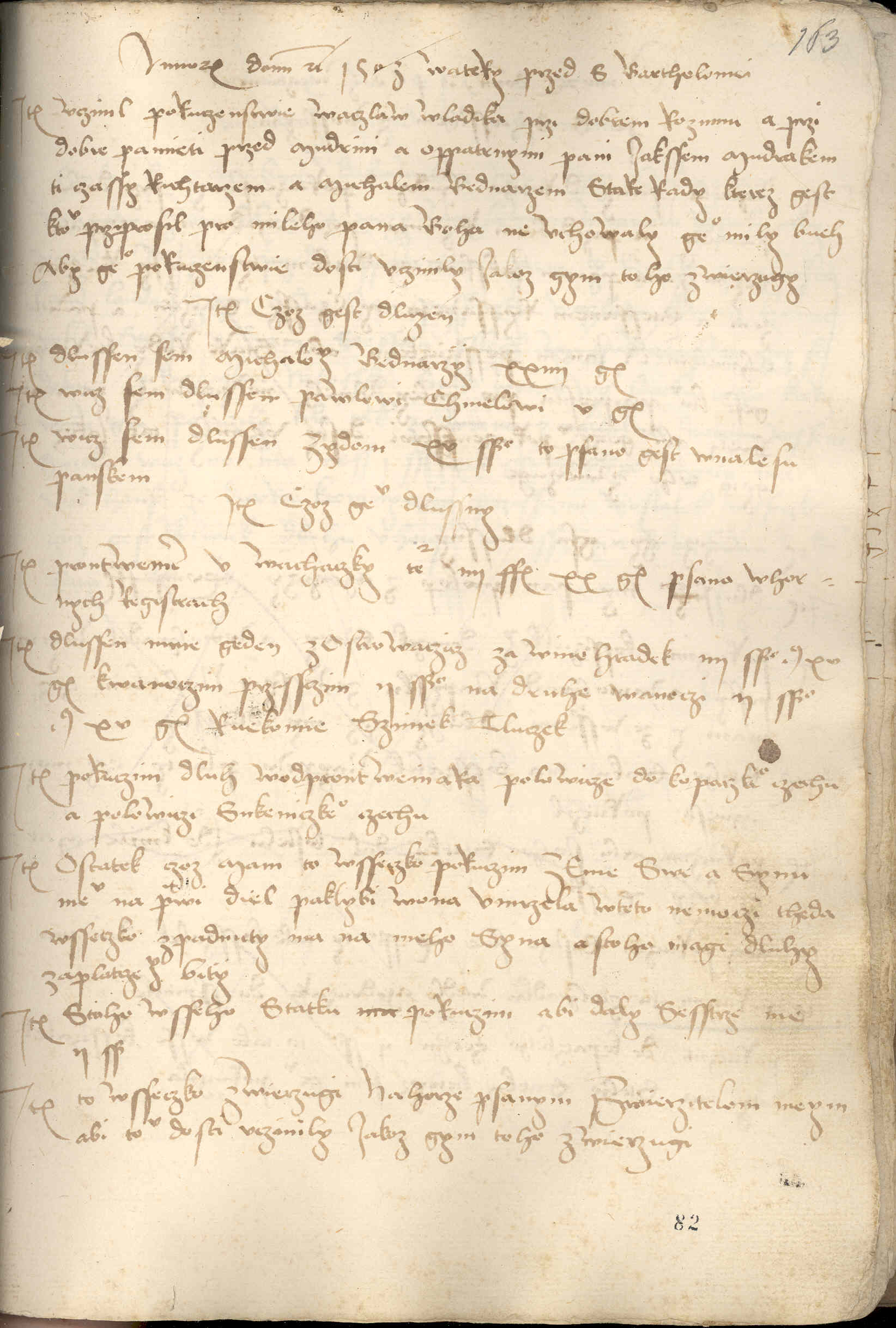 Annorum Domini etc. 1503 w atery przed s. Bartholomei Item vczinil poruczenstwie Waczlaw Wladika przi dobrem rozumu a przi dobre pamieti przed mudrimi a oppatrnymi pani Iakssem Mudrakem, ti czassy richtarzem, a Michalem bednarzem, stare rady, kterez gest k tomv prziprosil pro mileho pana Boha. Nevchowaly geho mily Bueh, aby geho poruczenstwie dosti vczinily, iakoz gym toho zwierzugy.