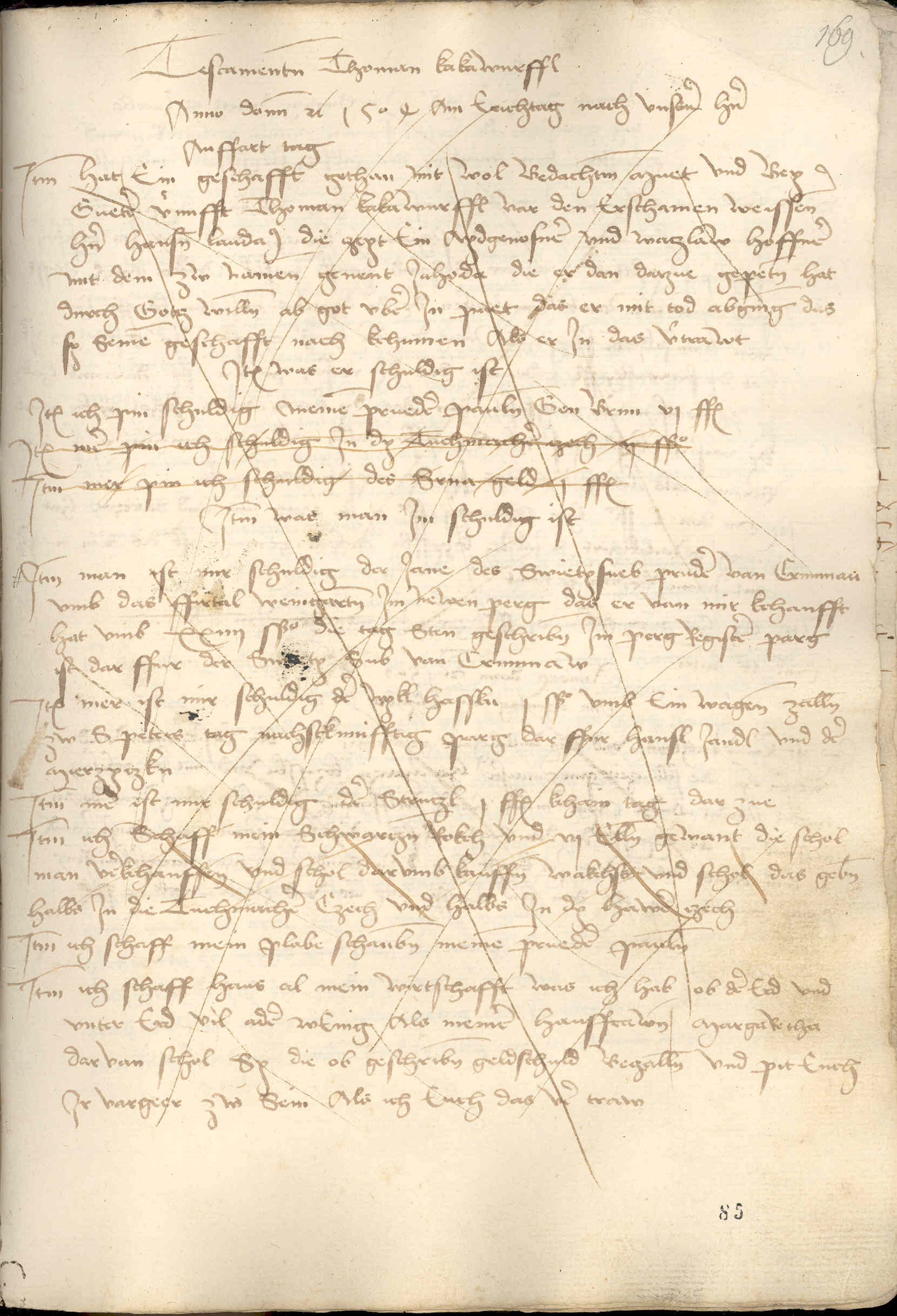 Anno Domini etc. 1504 am erichtag nach vnseren Herren Auffart tag. Item hat ein geschafft gethan mit wolbedachtem muet vnd bey der gueter vernufft Thoman Kakawurffl var den erschamen weissen herren Hansen Laudamus, die czeyt ein aydgenosner, vnd Waczlaw hoffner, mit dem zw nammen genent Iahoda, die er dan darzue gepeten hat durch gotcz willen. Ab got vber in puet, das er mit tod abging, das sy seinem geschafft nach kchumen, als er in das vertrawt.