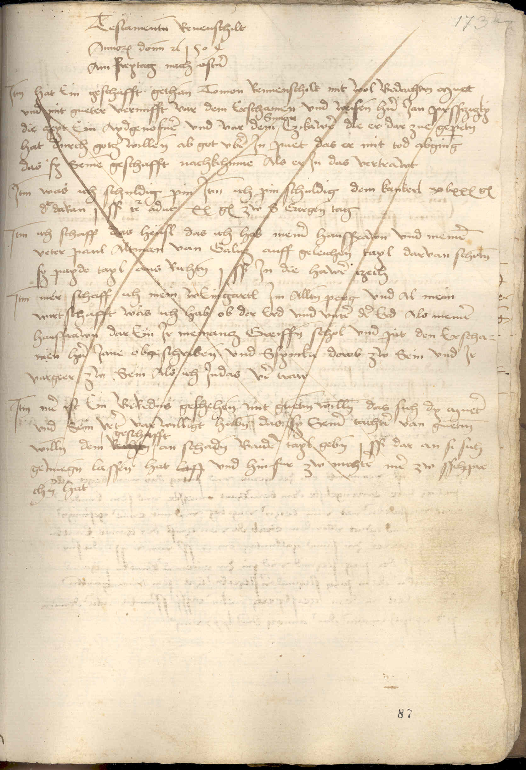 Léta Páně 1504 v pátek po Velikonocích učinil závěť Toman Renenšilt, a to s dobrým rozumem a rozmyslem. Závěť byla zhotovena před opatrými pány Janem Prštickým, toho času přísežným, a před Šimonem Czikauerem, kteří k tomu byli připrošeni. A pokud Bůh dopustí a on zemře, pak má být tato závěť naplněna.