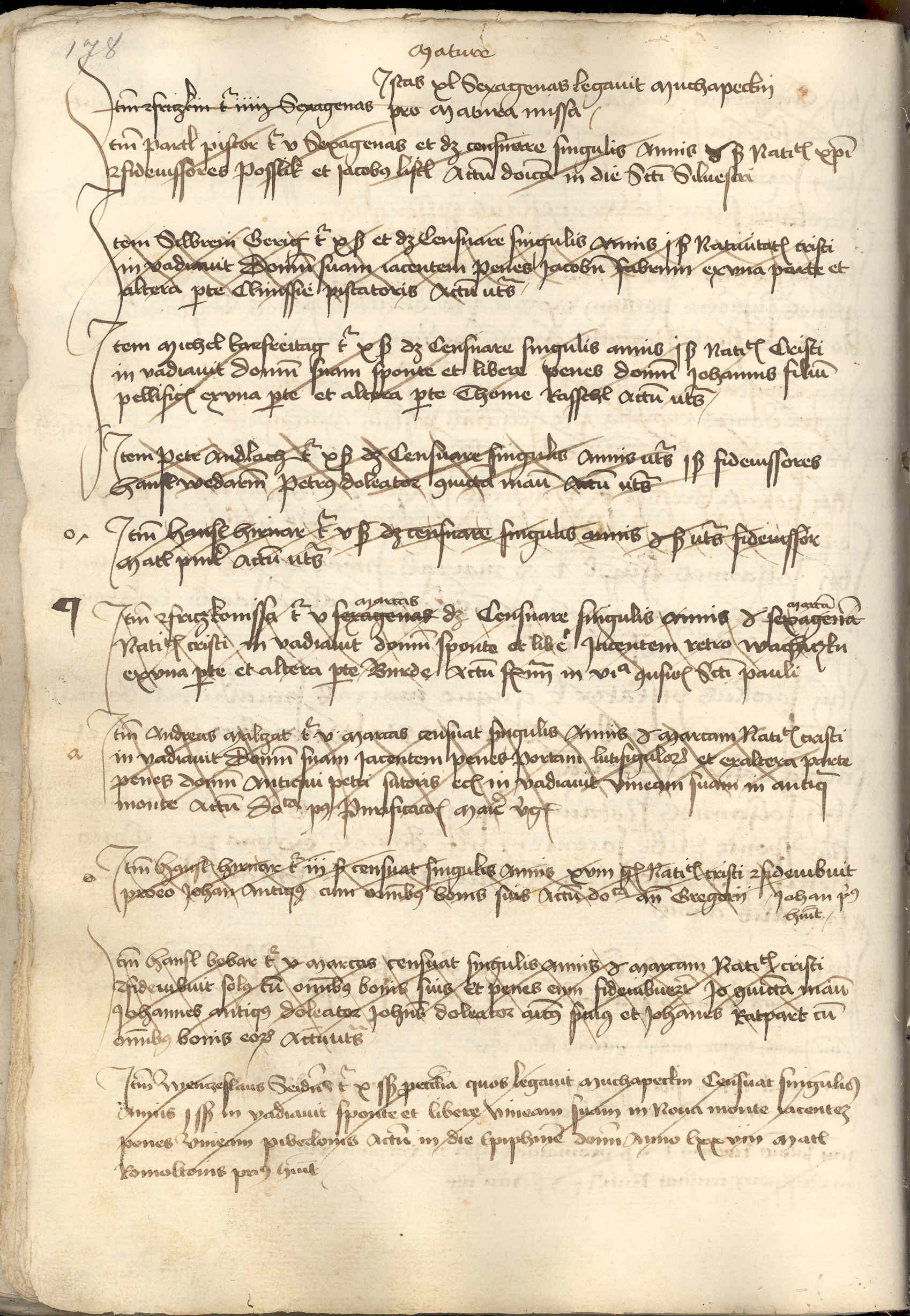 Item Wenczeslaus Seiden[swon]cz tenetur X sex. pro ecclesia, quos legavit Muchapeckin, censuat singulis annis I sex. Invadiavit sponte et libere vineam suam in Noua monte iacentem penes vineam Piberlonis, actum in die Epiphanie Domini anno lxxviii. Matl Romoltonis prius habuit.24)25)