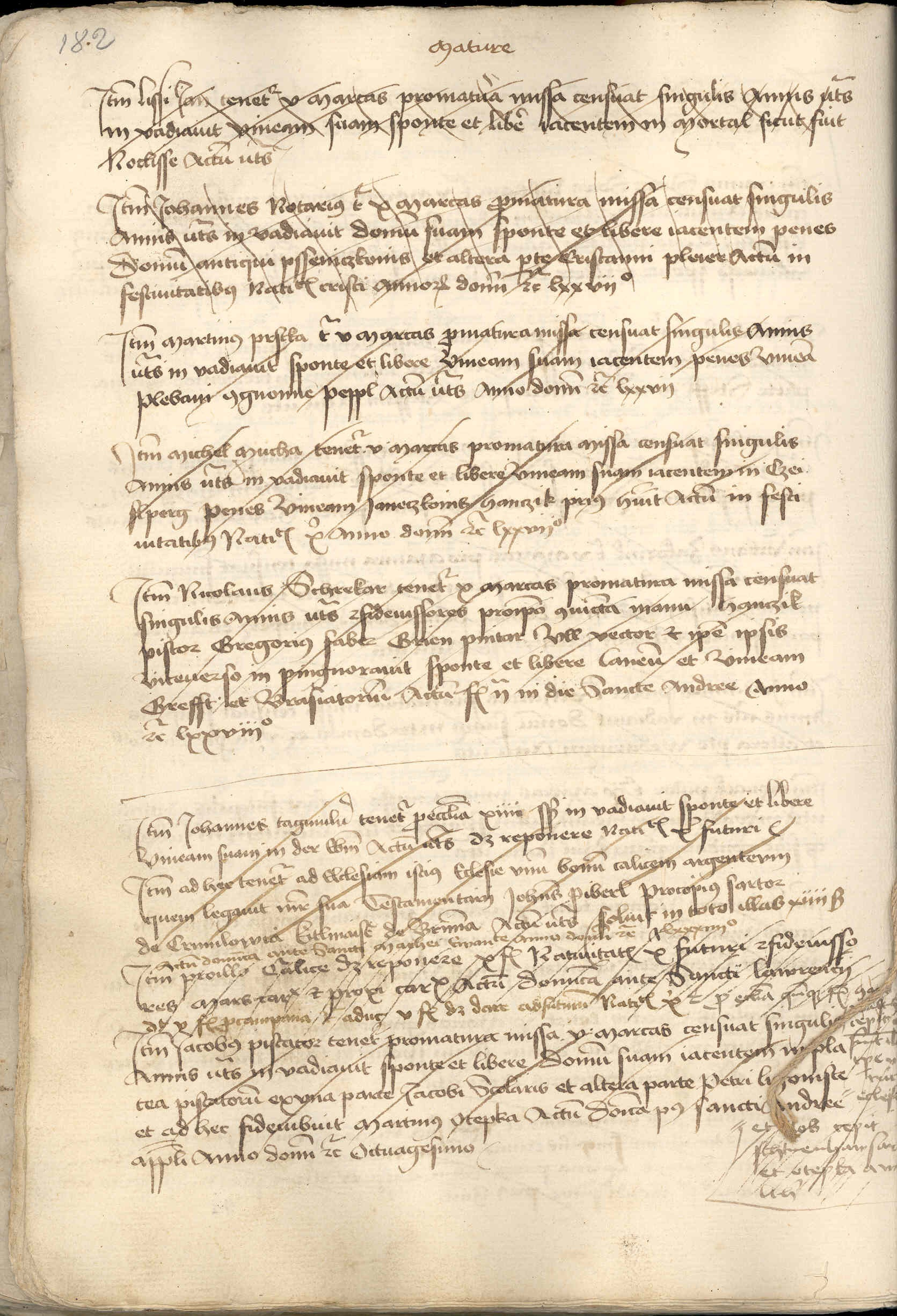 Item pro illo calice debet reponere X fl. Nativitatis Cristi futuri. Fideiussores Mars carnifex et Proxi carnifex, actum dominica ante sancti Lawrencii.16)