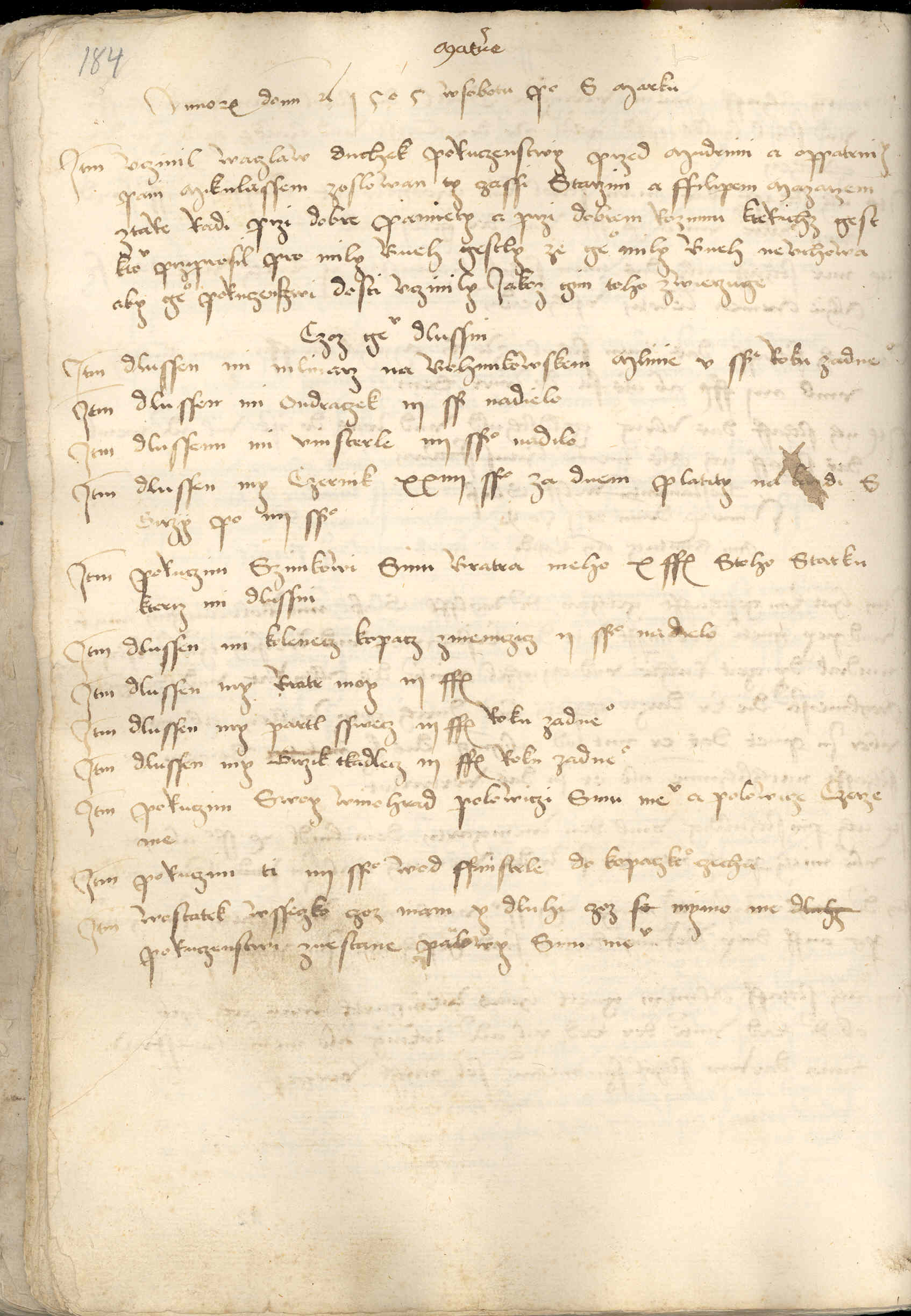Annorum Domini etc. 1505 w sobotu po s. Marku Item vczinil Waczlaw Duchek poruczenstwy przed mudrimi a oppatrnimy pani Mikulassem z Oslowan, ty czassi starzim, a Ffilipem mazarzem, ztare radi, przi dobre pamiety a przi dobrem rozumu, kterichz gest k tomv prziprosil pro mily Bueh. Gestly ze geho mily Bueh nevchowa, aby geho poruczensczwi dosti vczinily, iakoz gim toho zwierzuge.