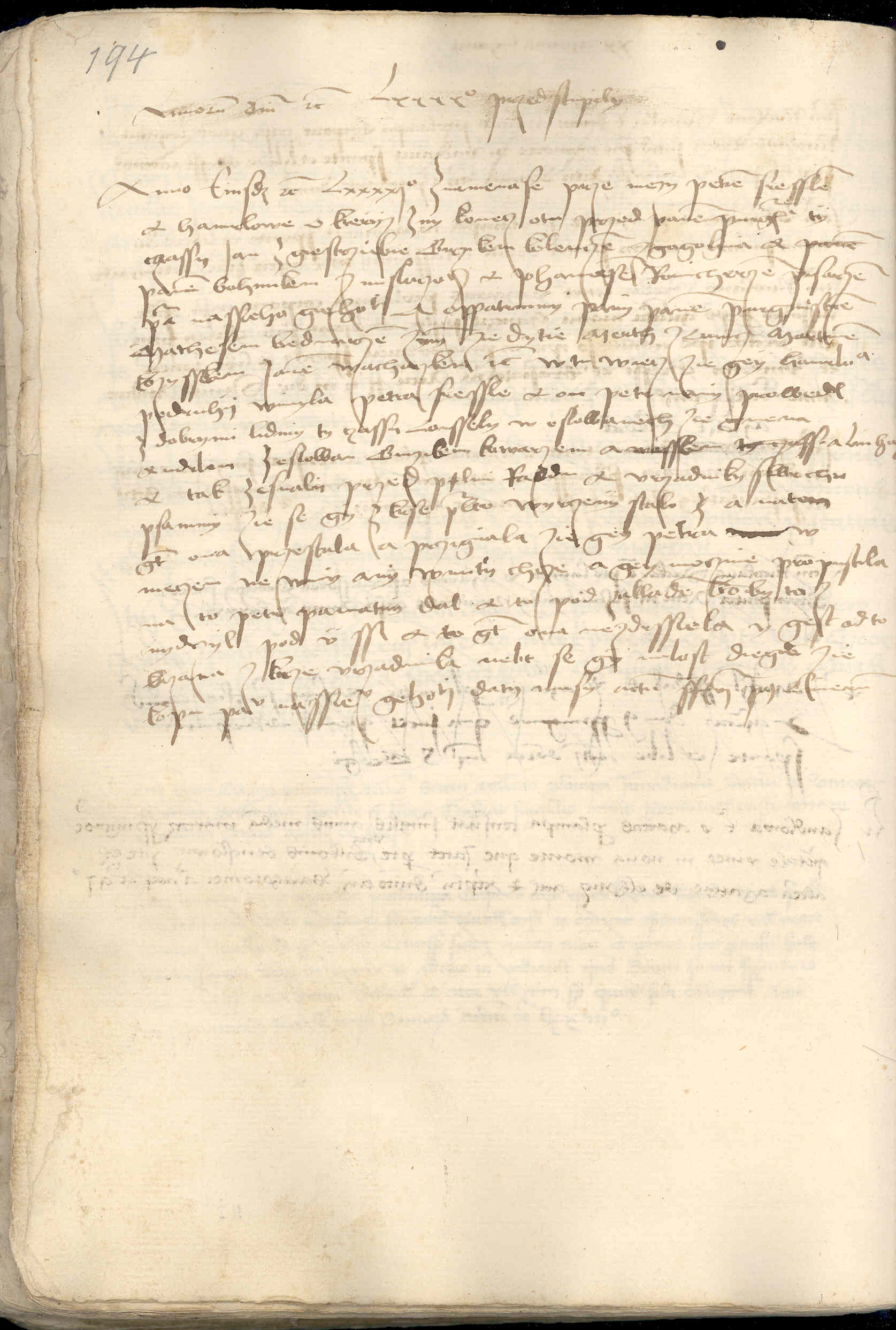 Anno eiusdem etc. Lxxxxjo znamena se prze mezij Petrem Fresslem a Hamrlowe, o kteryz z ny konecz o tu przed panem purgkrabi tij czassij Ian z Giestroziebie, Girzikem Kolenczem z Gagolina (?!) pane1) a panem panem Bohunkem z Misloczowicz a Iohannesem Ronnicherzem, pisarzem pana nassieho Geho Milosti a oppatrnimij panij, panem purgmistrem Mathesem bednarzem, z nym ziedytie Merth z Cunicz, Martinem Kozysskem, Ianem Wachaczkem etc.